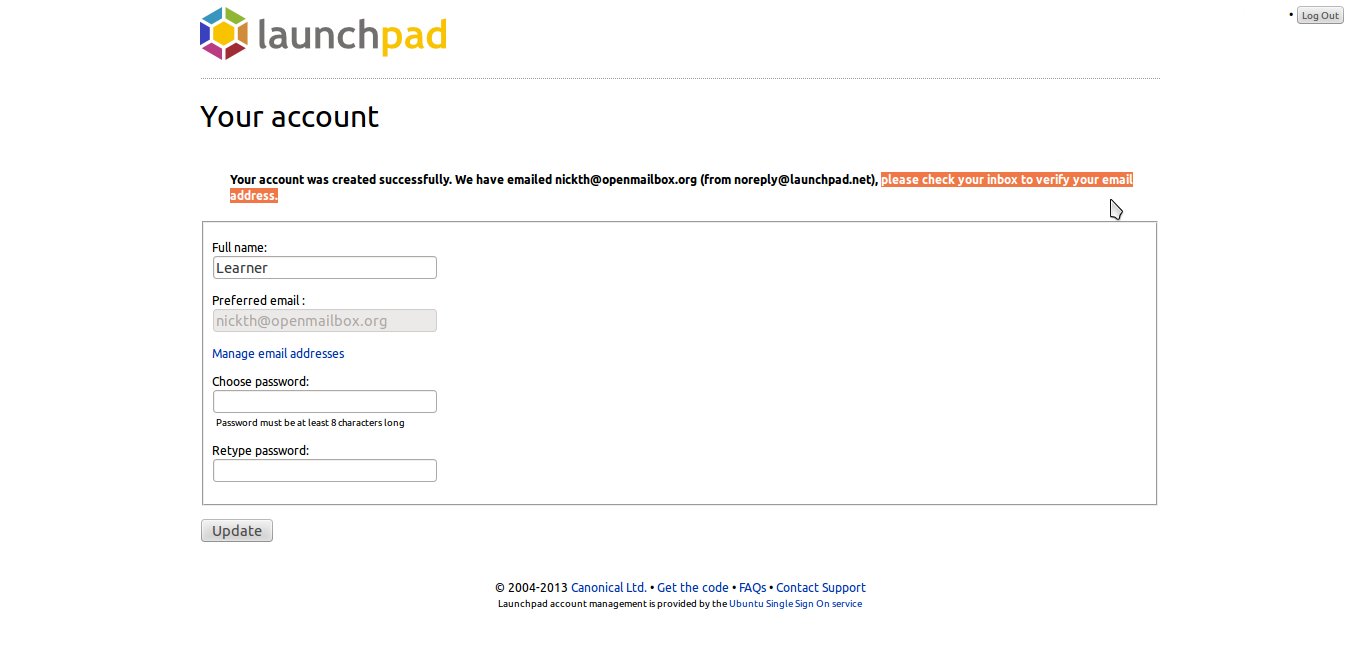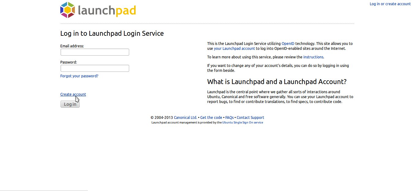 Επισκεφτείτε την σελίδα: https://login.launchpad.net/+login και πατήστε το Create Account