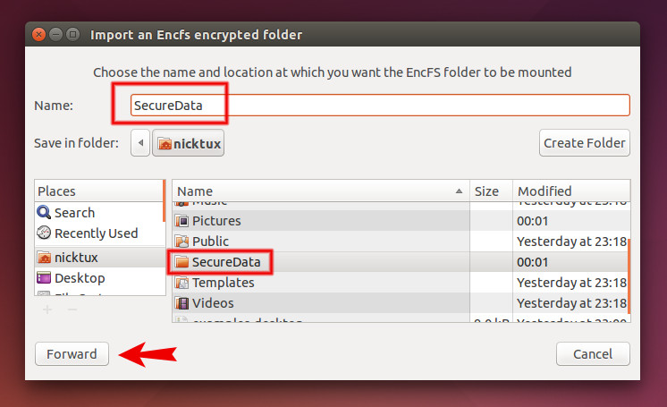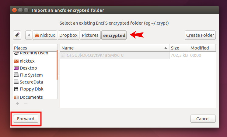 Θα σας ζητηθεί ο κωδικός του EncFS και έπειτα θα προσαρτηθεί και πάλι ο κατάλογος με τα μη-κρυπτογραφημένα αρχεία(SecureData).