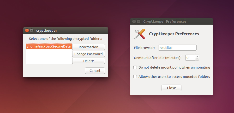 Αφού τελειώσουμε με τις ρυθμίσεις είμαστε έτοιμοι. Πλέον το cryptkeeper θα μας ζητήσει τον κωδικό του EncFS ώστε να προσαρτήσει τον μη-κρυπτογραφημένο κατάλογο και μπορούμε να χρησιμοποιούμε αυτό το εργαλείο αντί του τερματικού.