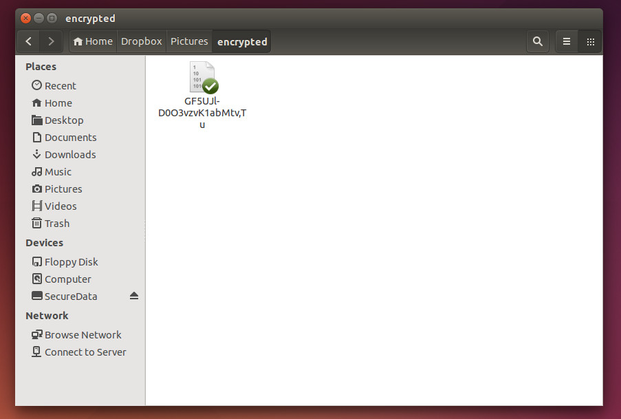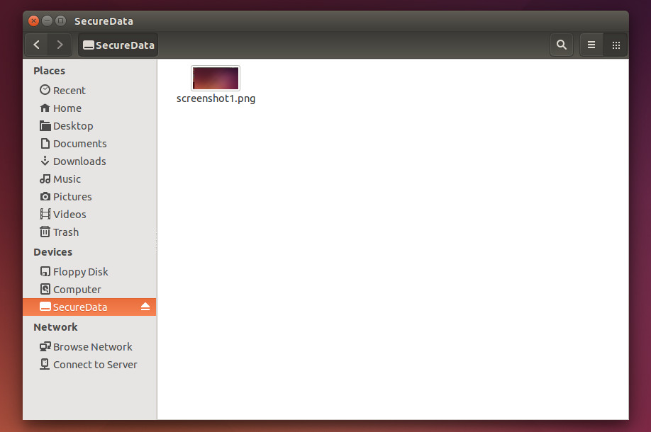 Αυτό που θα πρέπει να κάνουμε από εδώ και πέρα, αφού προσαρτήσουμε τον κατάλογο με τα μη-κρυπτογραφημένα αρχεία μας(SecureData), είναι να τοποθετούμε τα αρχεία μας εκεί και μόνο. Δεν πρέπει να τοποθετήσουμε αρχεία στον κρυπτογραφημένο κατάλογο (encrypted).