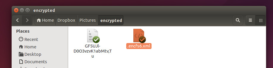Σημαντικό: Θα δείτε ότι θα δημιουργηθεί ένα αρχείο ονόματι .encfs6.xml. Είναι κρυφό αρχείο και για να το δείτε πρέπει να πάτε στον κρυπτογραφημένο κατάλογο (encrypted) και να πατήσετε τον συνδυασμό Ctrl+H για να εμφανιστούν τα κρυφά αρχεία.
