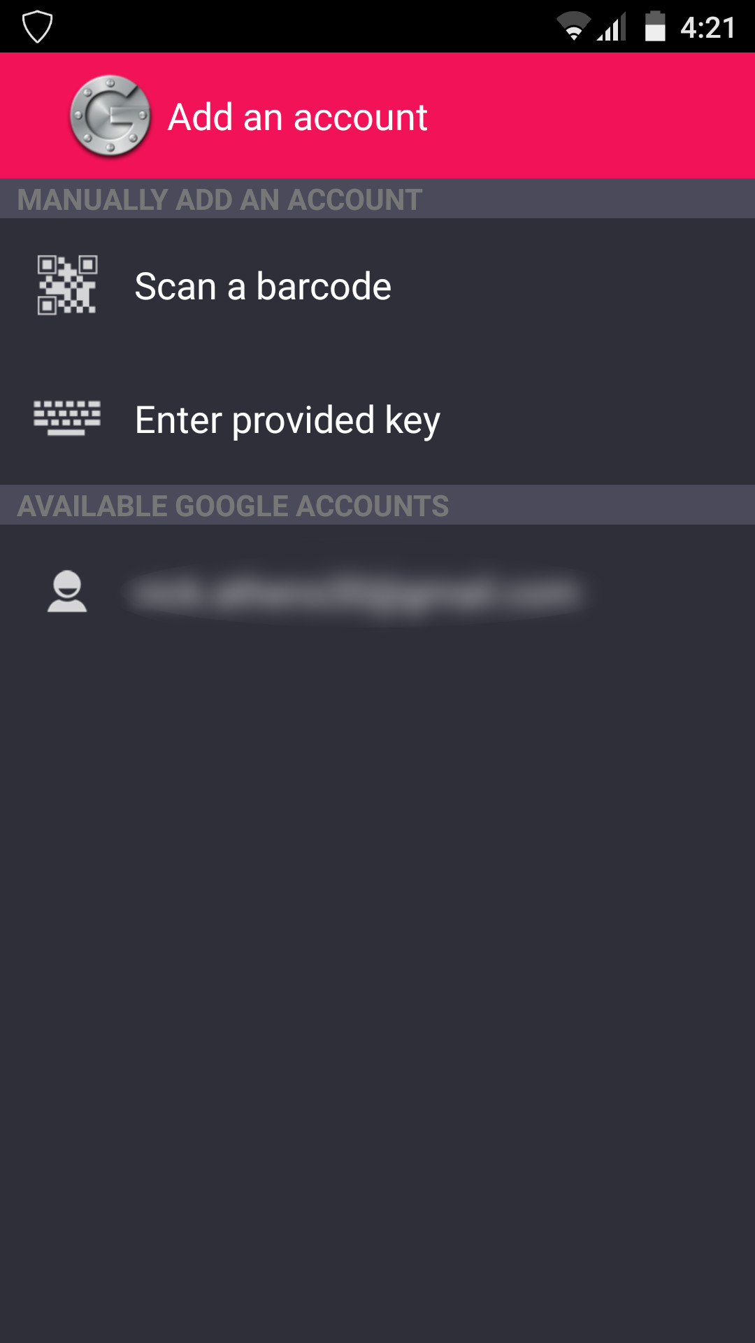 Πατώντας το «Set up account» στον Επαληθευτή, θα σας δωθούν δυο επιλογές «Scan a barcode» ή «Enter provided key».
