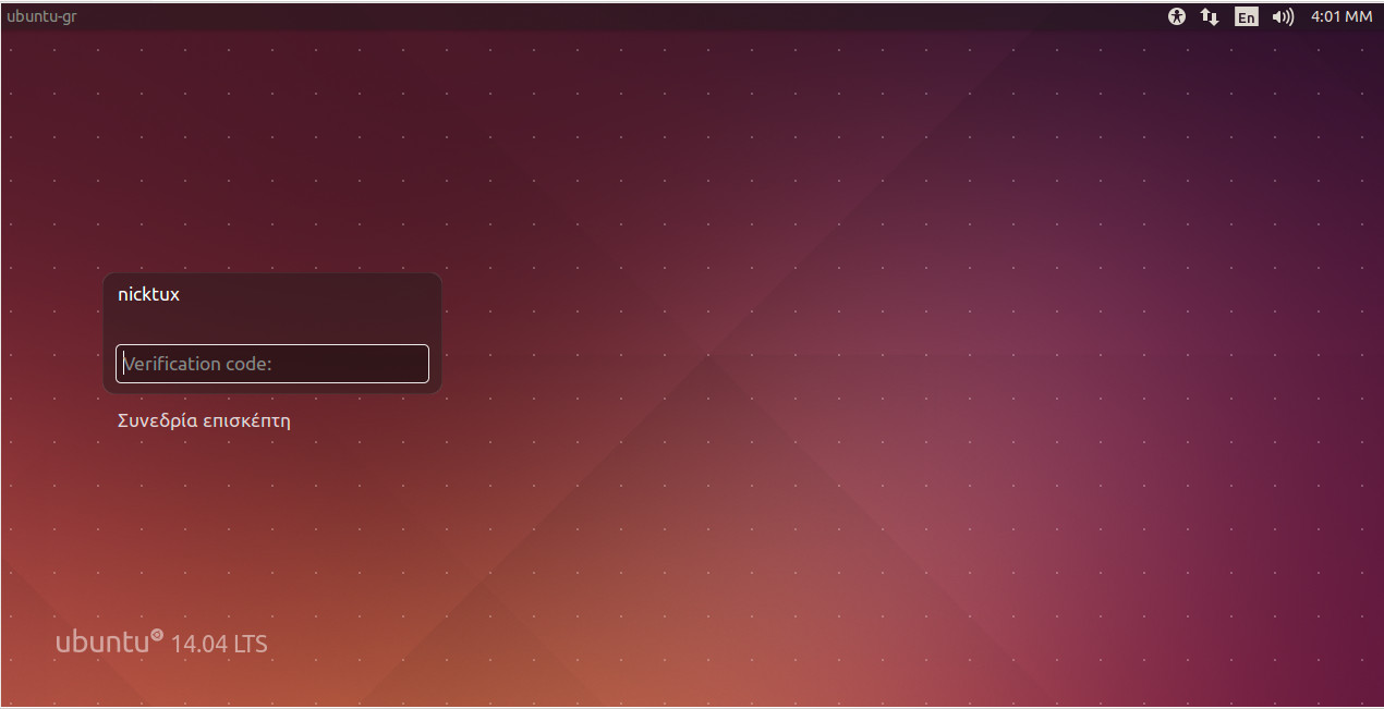 Κάνοντας τώρα μια αποσύνδεση, θα δείτε ότι πλέον σας ζητείται και ο κωδικός που έχει παραχθεί από την συσκευή, εκτός του κωδικού χρήστη του Ubuntu.