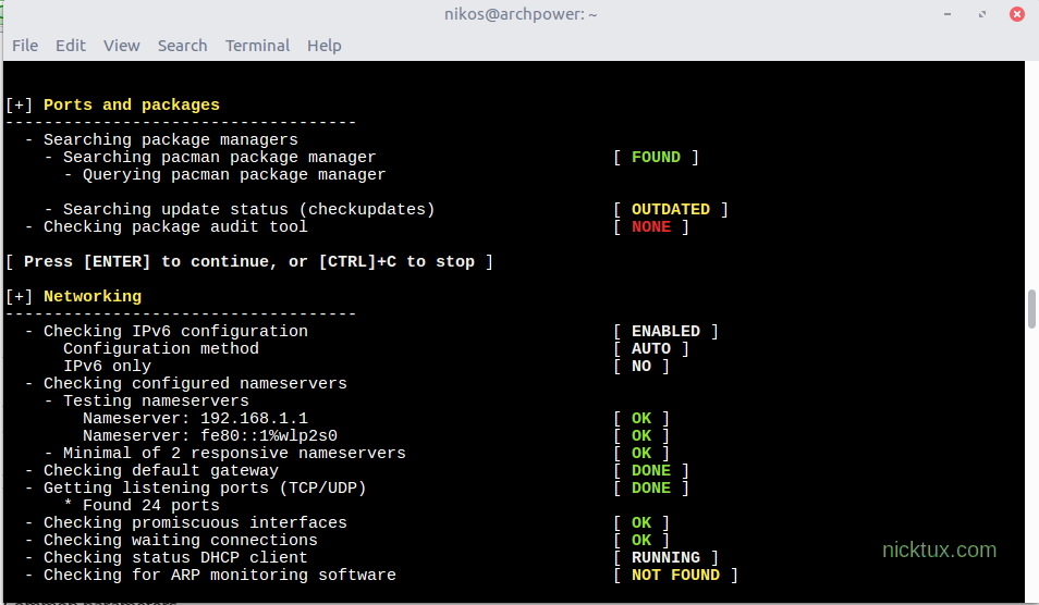 Αυτή ήταν και η πιο βασική χρήση του lynis. Φυσικά και μπορεί κάποιος να φτιάξει .desktop app αν τον βολεύει, ακόμη να φτιάξει cron job, systemd timer, ώστε να αυτοματοποιήσει την διαδικασία σάρωσης.