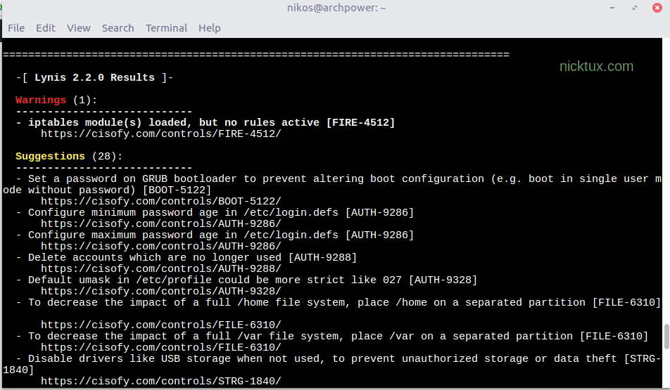 – από το Official site του lynis. Και έχει κι άλλα, γι’ αυτό γράφω παραπάνω «Καλό διάβασμα».