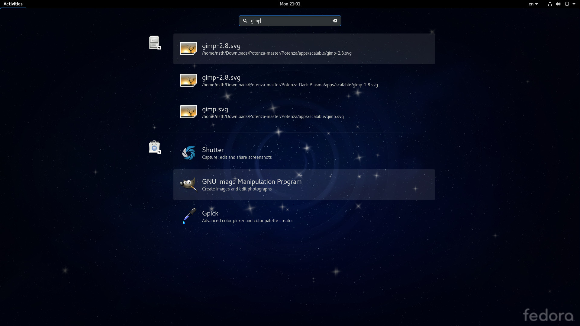 Η αναζήτηση είναι αρκετά πιο γρήγορη και στοχευμένη από άλλες φορές (άσχετα αν τρέχω το Fedora σε SSD, πάντα σε SSD έτρεχε ούτως ή άλλως) και επίσης γυρνά αποτελέσματα μέσα από την εφαρμογή Software, για πιθανή εγκατάσταση εφαρμογής.