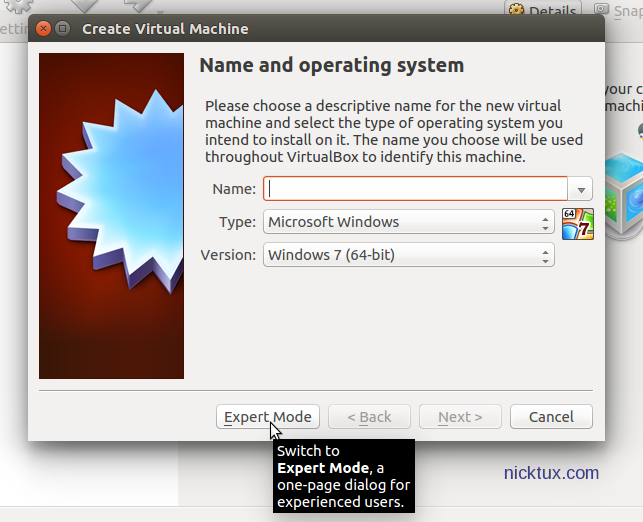Στην αρχή της εγκατάστασης χρησιμοποιήσαμε το όνομα Windows7 (δείτε την εικόνα), το οποίο είναι ένα σωστό όνομα (χωρίς κενά). Αυτό, θα δημιουργήσει το αρχείο .vbox με την ονομασία, Windows7.vbox.