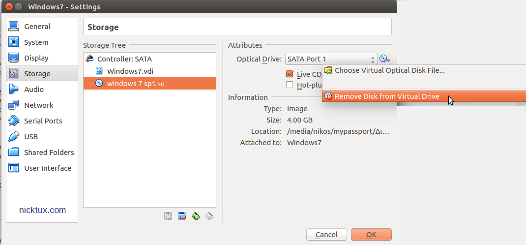 Στη συνέχεια κάνουμε κάποιες ρυθμίσεις για τον εικονικό δίσκο όπως: