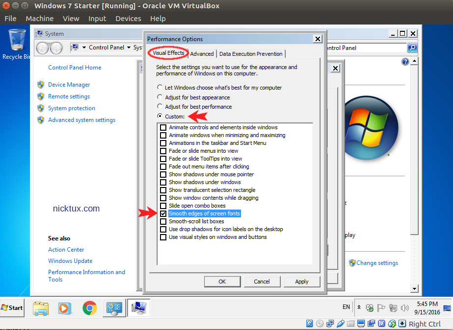 Στο παράθυρο που θα ανοίξει κάνουμε τικ στο κουτί «Adjust for best performance» και κάνουμε κλικ μόνο στο κουτάκι «Smooth edges of screen fonts».