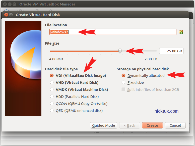 File Location: Η τοποθεσία στην οποία θα δημιουργηθεί ο εικονικός δίσκος. Αφήνουμε τη προεπιλογή, εκτός και αν έχουμε κάποιον ιδιαίτερο λόγο να τοποθετήσουμε τον εικονικό δίσκο κάπου αλλού (πχ έλλειψη χώρου ή SSD στον οποίο δεν θέλουμε εγγραφές).