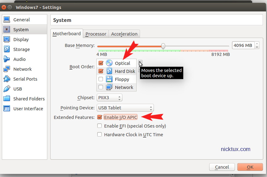 Επίσης ενεργοποιούμε τη λειτουργία I/O APIC την οποία θέλουμε, ώστε να προχωρήσουμε στην επόμενη καρτέλα. Τις υπόλοιπες επιλογές μπορούμε να τις αφήσουμε ως έχουν.