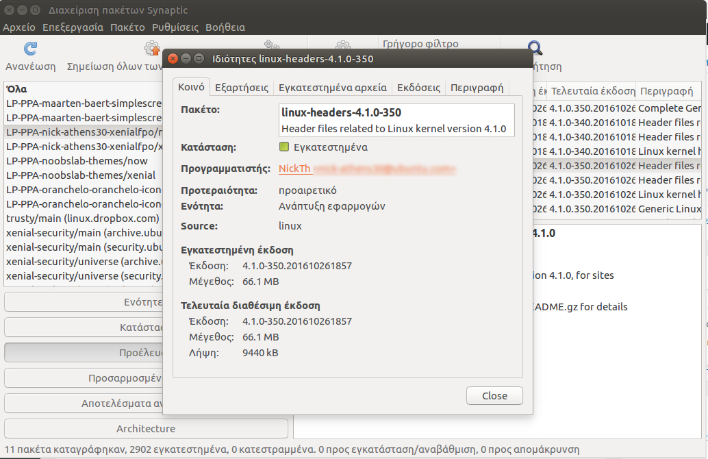 Επίσης, κάνοντας κλικ στο «Ιδιότητες» μπορούμε να δούμε αρκετές χρήσιμες πληροφορίες που αφορούν το συγκεκριμένο πακέτο, από το συγκεκριμένο αποθετήριο.