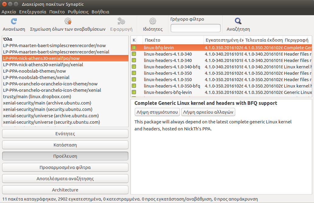 Γενικότερα ο Synaptic είναι ένα αρκετά έξυπνο πρόγραμμα διαχείρισης λογισμικού. Δεν είναι εξειδικευμένο στη διαχείριση αποθετηρίων, ωστόσο το αναφέρουμε σε αυτή τη δημοσίευση διότι μπορεί να μας βγάλει από αρκετά δύσκολες καταστάσεις.
