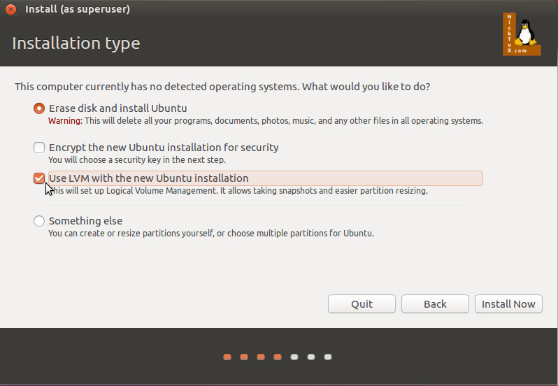 Το Ubuntu προσφέρει έναν εύκολο τρόπο για τη δημιουργία LVM κατά τη διάρκεια της εγκατάστασης.