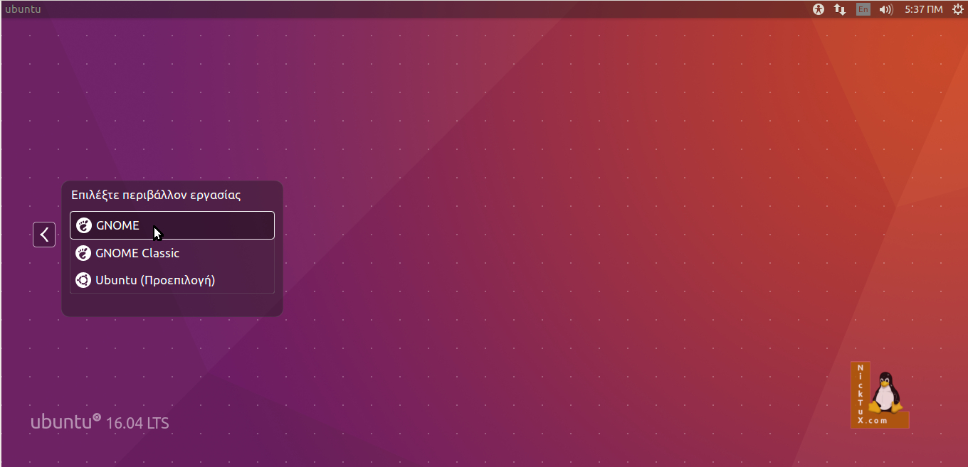 Όταν ολοκληρωθεί η εγκατάσταση, μπορούμε να επιλέξουμε το GNOME από την οθόνη εισόδου (login screen).