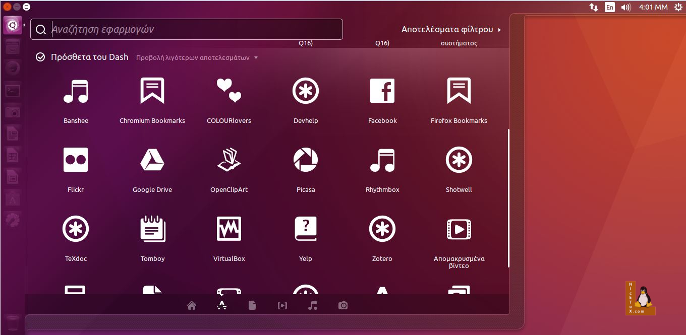 Επίσης, ίσως κάποιες εφαρμογές να εμφανίζονται εις διπλούν στο μενού, όπως για παράδειγμα οι «Ρυθμίσεις Συστήματος» ή η εφαρμογή «Τερματικό».