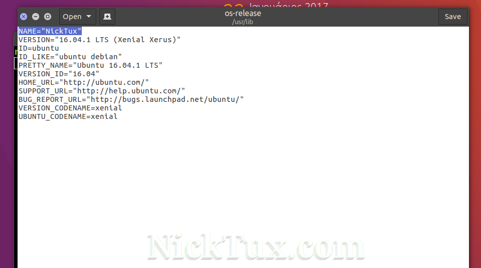 Ανοίγουμε με τον αγαπημένο μας editor και με δικαιώματα διαχειριστή το αρχείο /usr/lib/os-release.