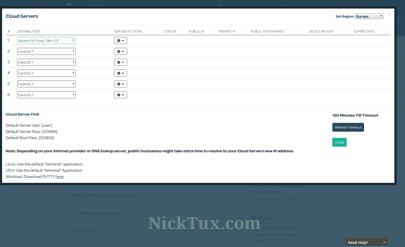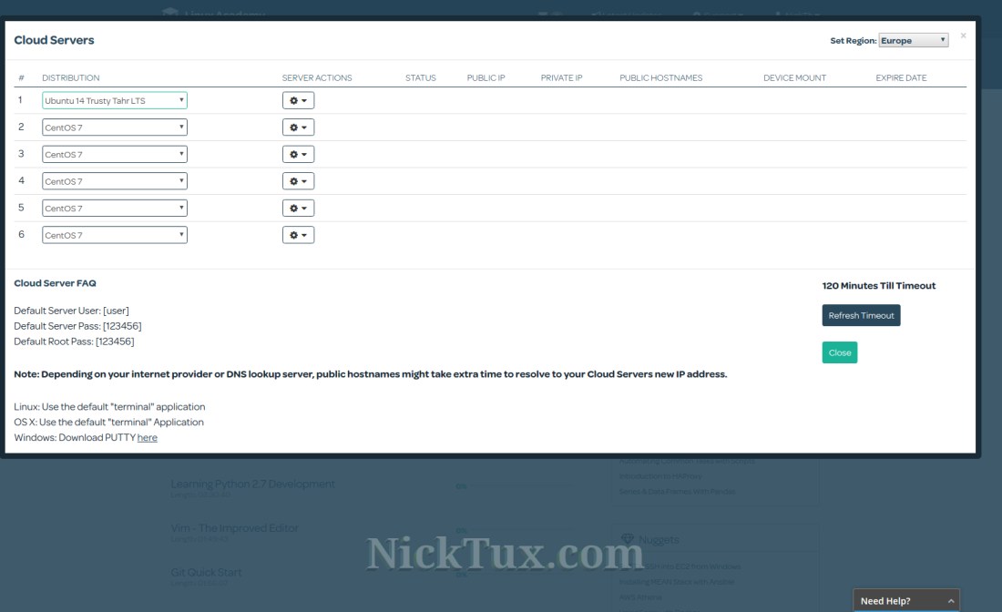 Στο Cloud Servers Section σας δίδεται η δυνατότητα να δημιουργήσετε τον δικό σας Server με το λειτουργικό σύστημα που επιθυμείτε. Από εκεί και έπειτα μπορείτε να εφαρμόζετε εκεί τα όσα μαθαίνετε.