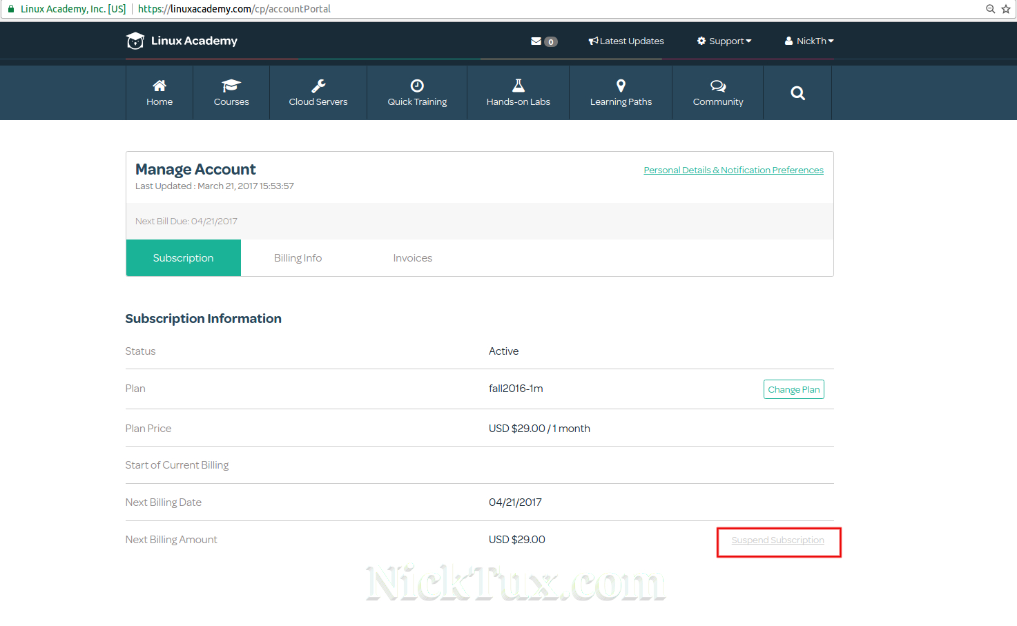 Πάμε τώρα και στο «ζουμί». Η χρέωση είναι $29/Month. Υπάρχουν βέβαια προγράμματα χρέωσης που συνολικά κοστίζουν λιγότερο, πρέπει όμως να πληρώσει κάποιος περισσότερα εφάπαξ, πχ ετήσια συνδρομή. Μπορείτε να δείτε περισσότερα για τις χρεώσεις εδώ: https://linuxacademy.com/join/pricing