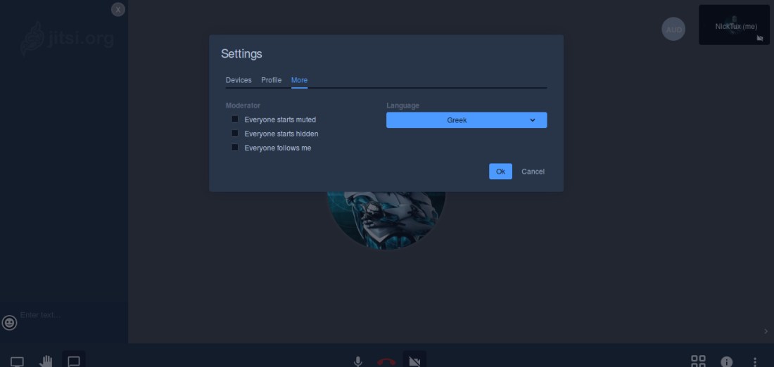 Την εικόνα (avatar) την αλλάζει κάποιος καταχωρώντας το email του, μέσω gravatar, από το Settings ⟾ Profile. Από το ίδιο μενού αλλάζει κάποιος και το όνομα (δηλ. από Fellow Jitser σε ότι θέλει).