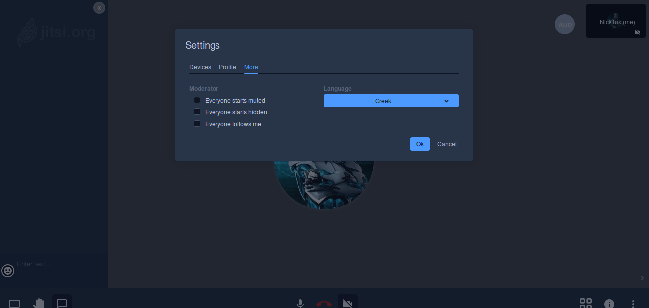 Την εικόνα (avatar) την αλλάζει κάποιος καταχωρώντας το email του, μέσω gravatar, από το Settings ⟾ Profile. Από το ίδιο μενού αλλάζει κάποιος και το όνομα (δηλ. από Fellow Jitser σε ότι θέλει).